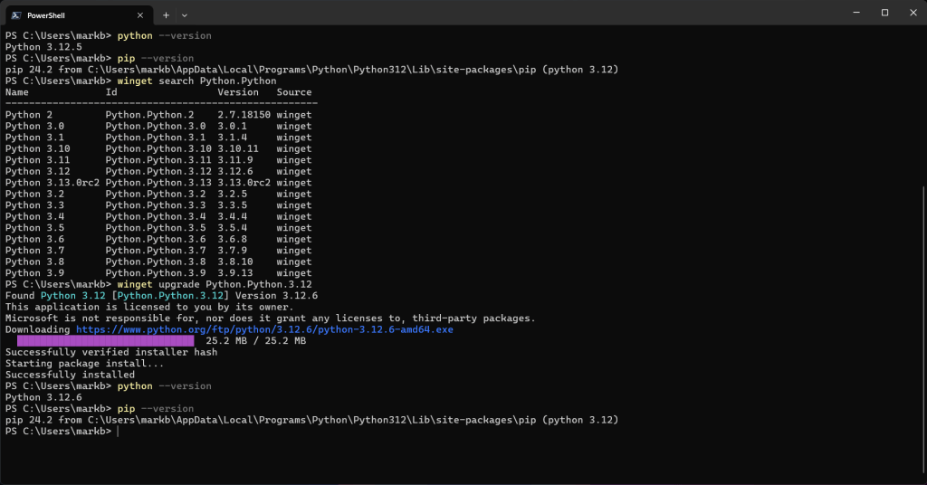 winget upgrade Python.Python.3.12Conclusion